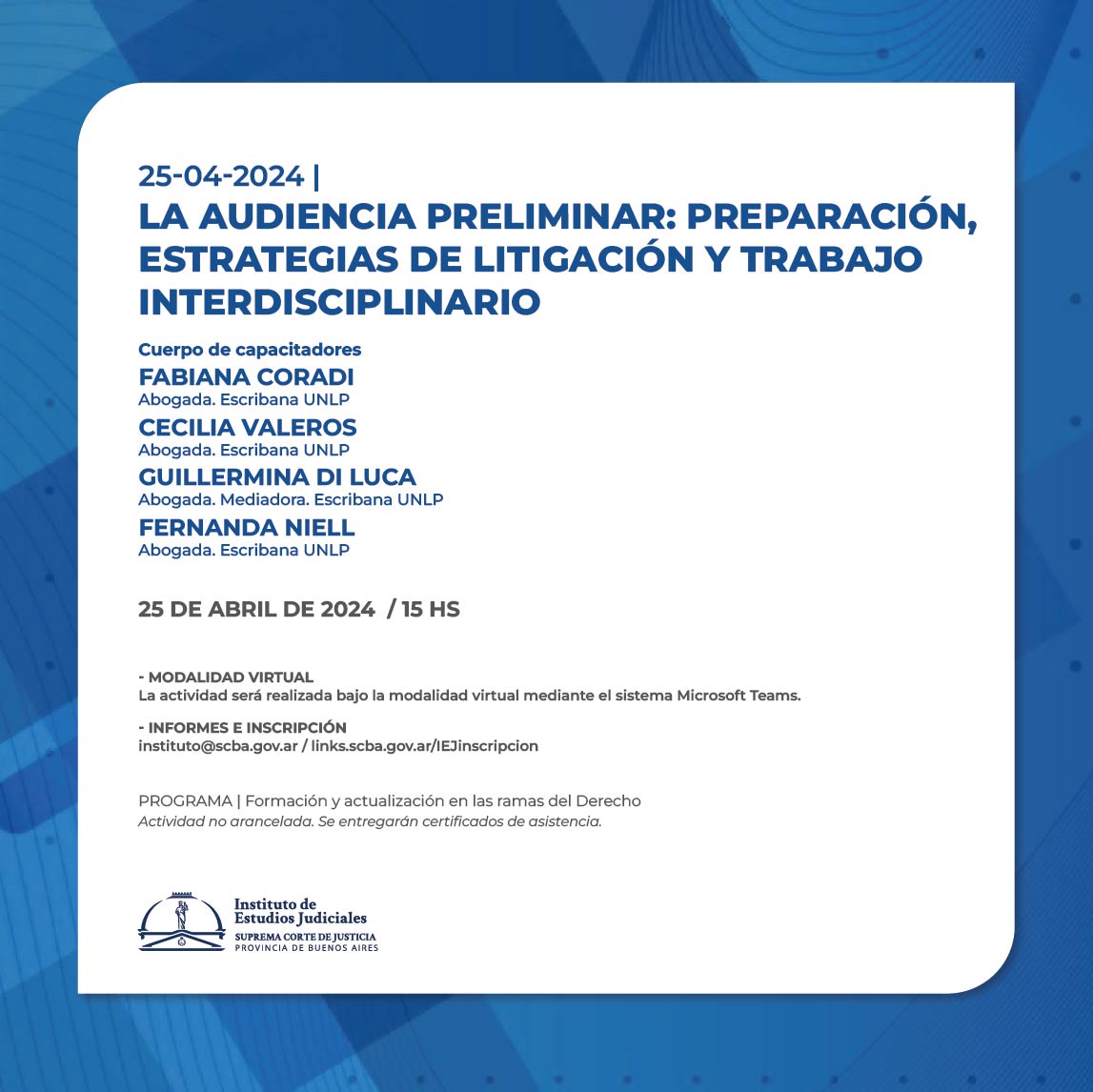 NOTA: La actividad será realizada bajo la modalidad mixta, presencial y virtual mediante transmisión en vivo por el canal de la SCBA